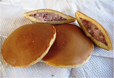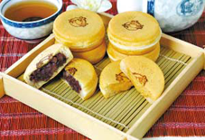注入橢圓型鐵制或銅制的模具中,然后放入內餡(多為小豆餡),