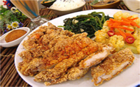 外觀(guān)金黃,香氣誘人可配合豬排醬食用。
